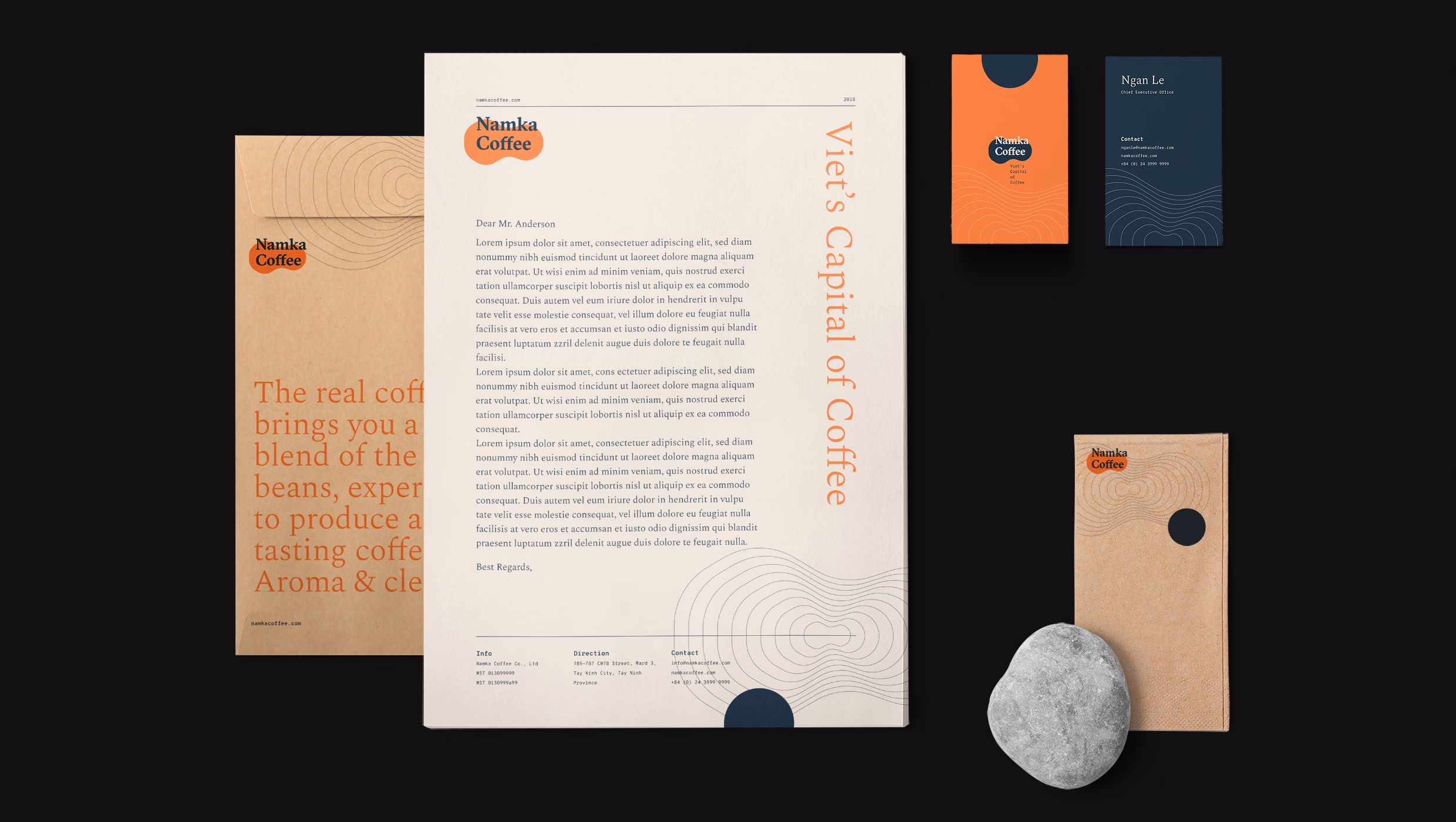 The logo I created features the silhouette of Mount Namka, an iconic peak that towers over Buon Ma Thuot region, Vietnam's coffee capital. The mountainscape honors the company's origins while conveying natural purity and craftsmanship. I developed branding that mirrors Namka's commitment to quality, from the packaging to the retail space. Clean black, white and wood tones create an upscale yet welcoming vibe. The bags showcase the brand's meticulous small-batch roasting process. Purposeful design choices, from the logo to the typography, work together to tell Namka's story as proud Vietnamese coffee curators. It was an honor to produce branding assets that reflect their team's passion and help spread the taste of Vietnam worldwide. The end result is a memorable brand identity that evokes Vietnam's coffee heritage, connecting with consumers seeking exceptional flavor and conscientious craftsmanship.